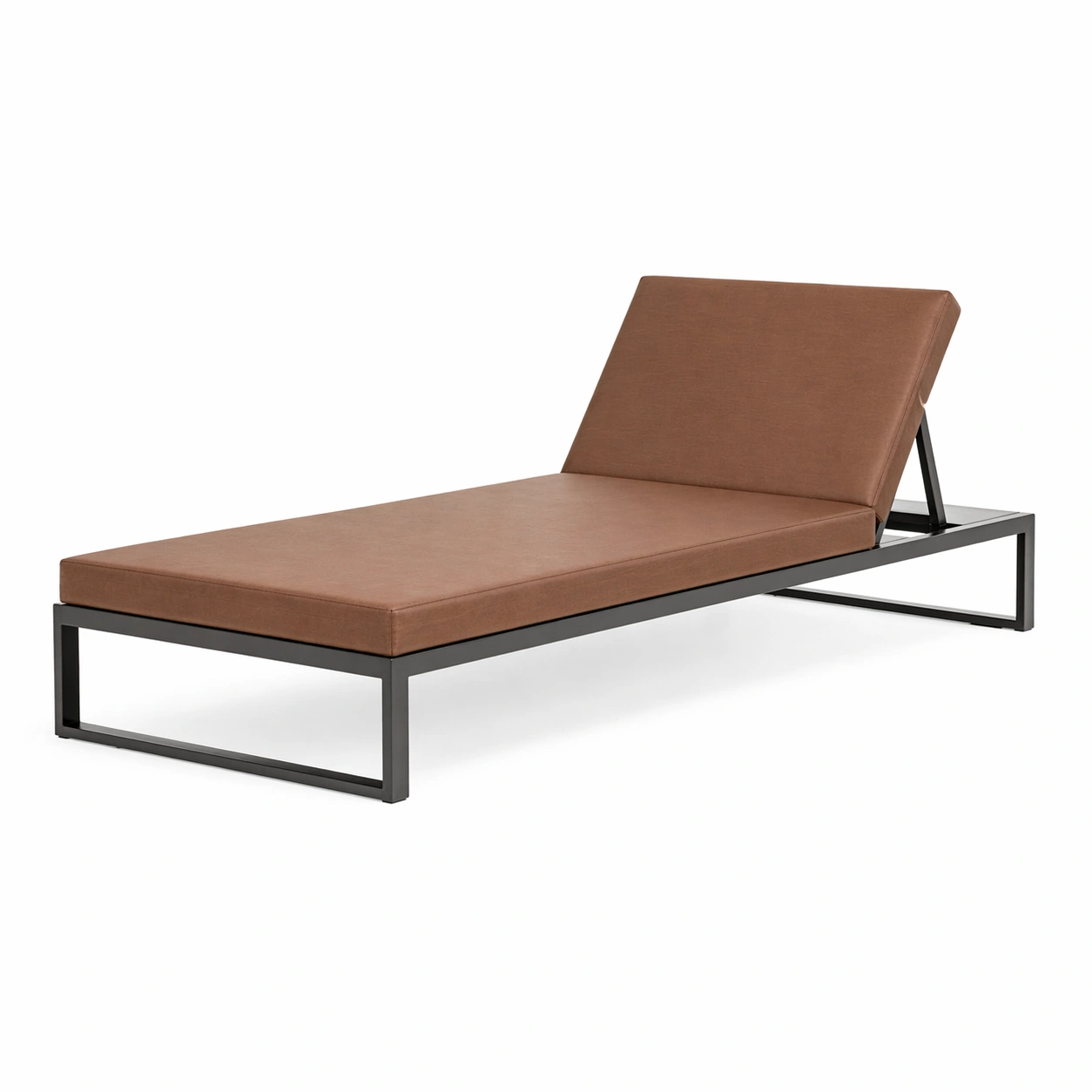 Die Sonnenliege hat einen robusten Stahlrahmen und ist mit braunem Kunstleder bezogen. Die Liege misst 200 cm in der Länge, 70 cm in der Breite und 30 cm in der Höhe. Die Rückenlehne ist verstellbar und die Oberfläche ist wasserabweisend. Das Gewicht beträgt 15 kg. Maximale Tragkraft: 120 kg.